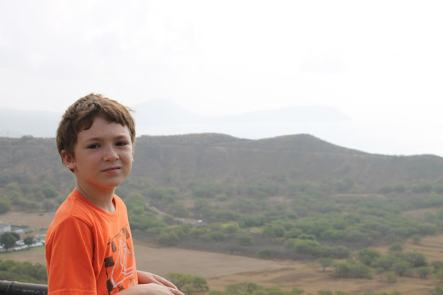 The kids were uncomplainingly good hikers and only required a couple of stops as we made our way, with what felt like 8000+ people, to the top of the mountain. We had a fantastic view of Waikiki and Honolulu in one direction, and the tip of the island where we hiked two days ago in the other. It was also very obvious at the top that we had hiked up through a crater. There were fairly loud and rowdy youths at the summit, but we didn't let them deter us and muscled our way to a good view. And to top off our lovely hike, we enjoyed a very tasty shaved ice when we got back to the start.