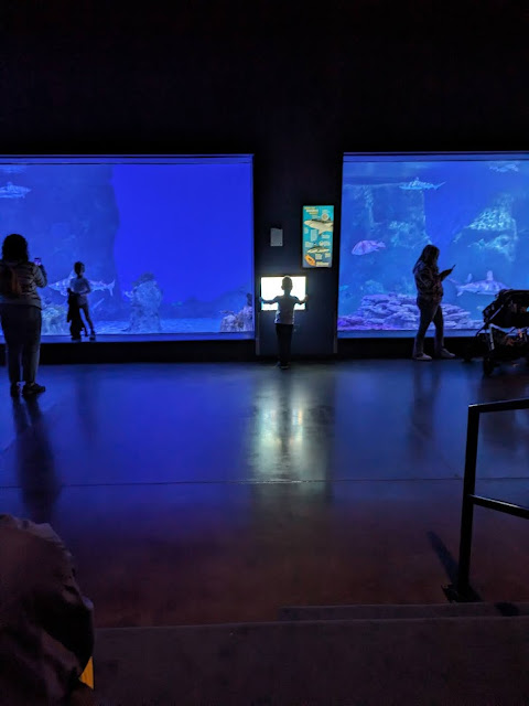 We all had a marvelous time. We began with the otters, but we saw everything. Some of us lingered longer at spots so we were sometimes separated. Even though we were seven big people to five little people, we lost a little person or two several times. Most everyone liked touching the creatures when we could, and we wished we could touch more creatures, like the otters. Everyone was hungry well before we were finished, but Gary and Gail had planned well with snacks, so the small people could hold out. I didn't bring any snacks for my big people, but we stopped for lunch on the way home so everyone survived. It was a really great outing.