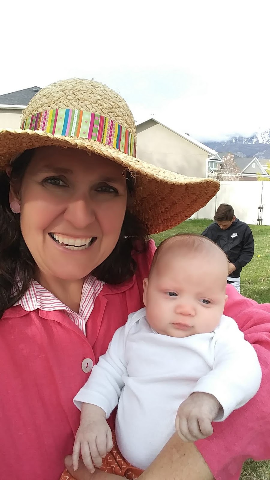 Me, in my Easter bonnet, with Thea who quiet enjoyed being outside.
