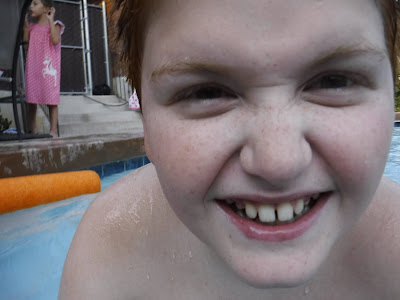 When we were doing our summer planning, Brick requested we have a massive water balloon fight. How fun does that sound? Super fun! Today was the day, and we gathered to fill balloons and then throw them at each other. We had close to 2,000, placed them strategically around Mom's front yard, and then went at it. We all ended up soaking wet which I think was the goal. It was wild fun, everyone from Mom to Thea was actively engaged in the battle, and we all shrieked in delight (and sometimes pain). It took more time to pick up all the little bits of balloon all over the yard than it did to fill then empty them, but we all had a great time.