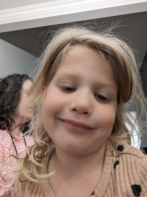 I stopped by Mikayla's house today and Freya climbed into my lap as Mikayla and I talked. She also took my phone and took 28 selfies. She's a pretty funny girl. Or a pretty, funny girl. Both work, as does my camera phone.